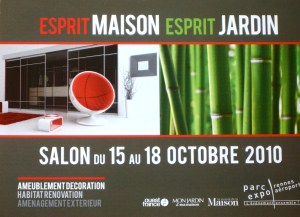 Je serai présente 4 jours au salon « Esprit maison-Esprit jardin » au Parc Expo de Rennes (Aéroport-La haie Gautrais Bruz) du 15 au 18 octobre 2010.