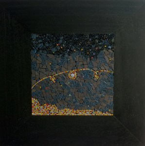 Pas à pas, dans l’atelier, les galets colorés se sont agencés, puis ont naturellement trouvés leur place dans la cuisine, côté évier et côté cuisson, se réunissant, posés tels des menhirs . Il manquait un pont. Des galets de zénitude ont continué leurs chemins, suivant un léger effet de vague .Le pont vers Quiberon et ses sentiers s’est installé.